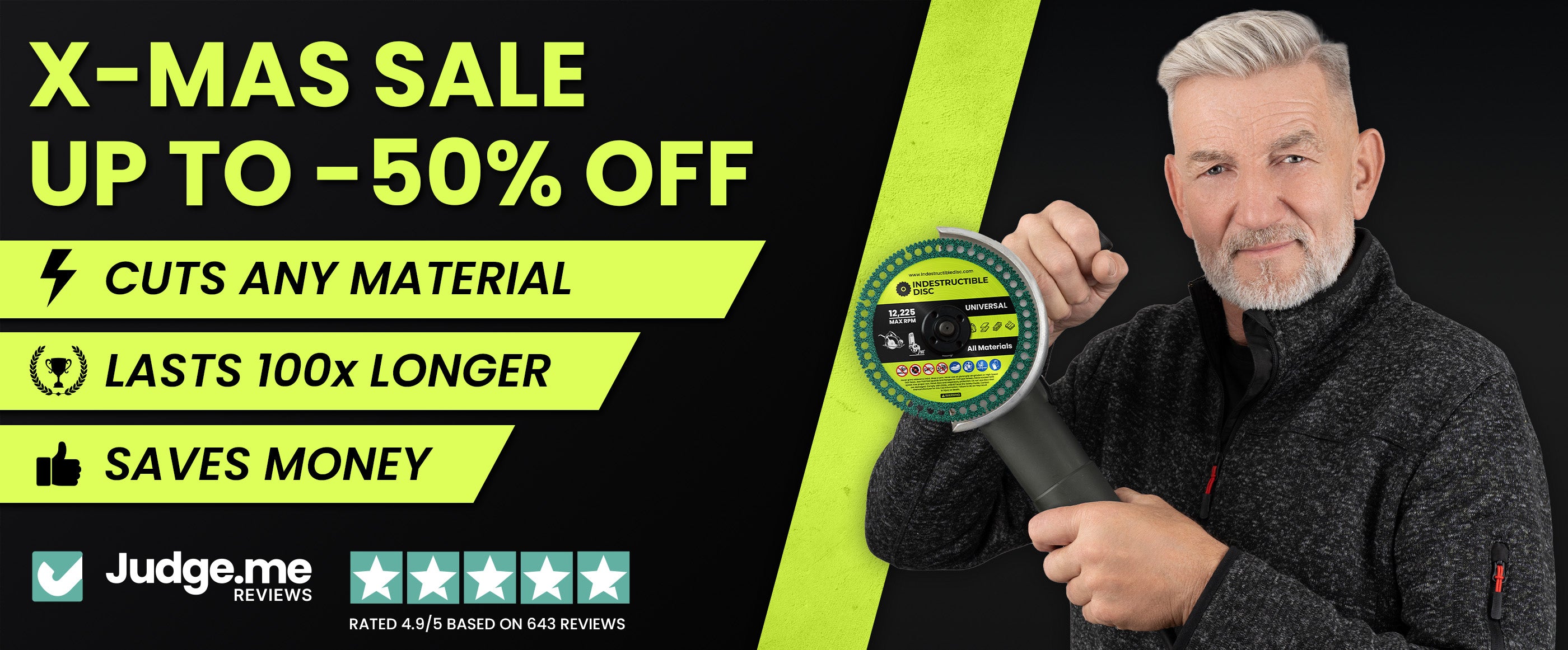 Finally! A cutting disc that actually lasts. Went through 5 different cheap discs this year - all garbage that broke after a few cuts. This one's been going strong for months of heavy metal work.