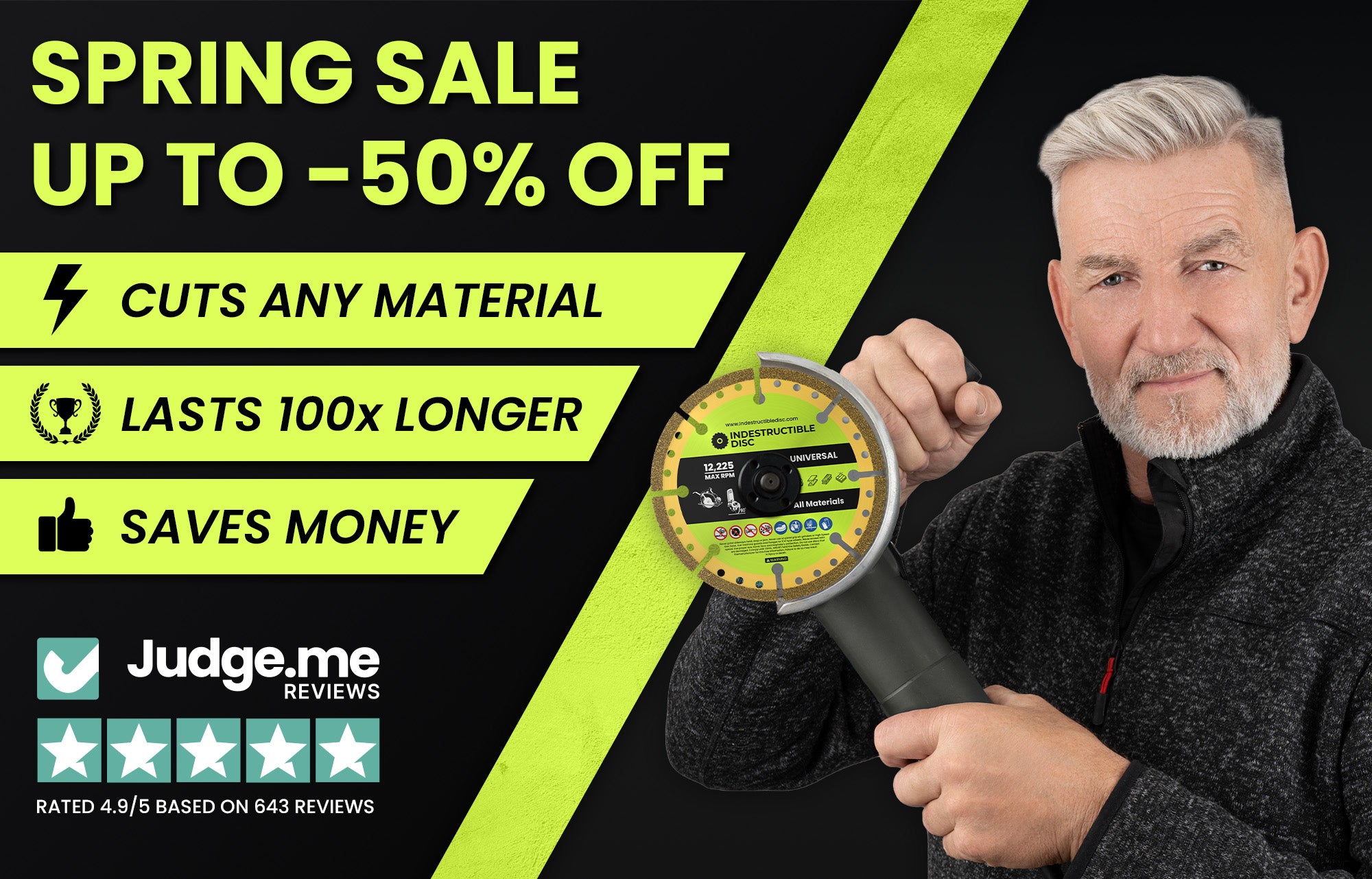 Say goodbye to fragile, fast-wearing cutting discs. Experience a whole new level of efficiency and durability with the Indestructible Disc™ – for flawless results on almost any material.