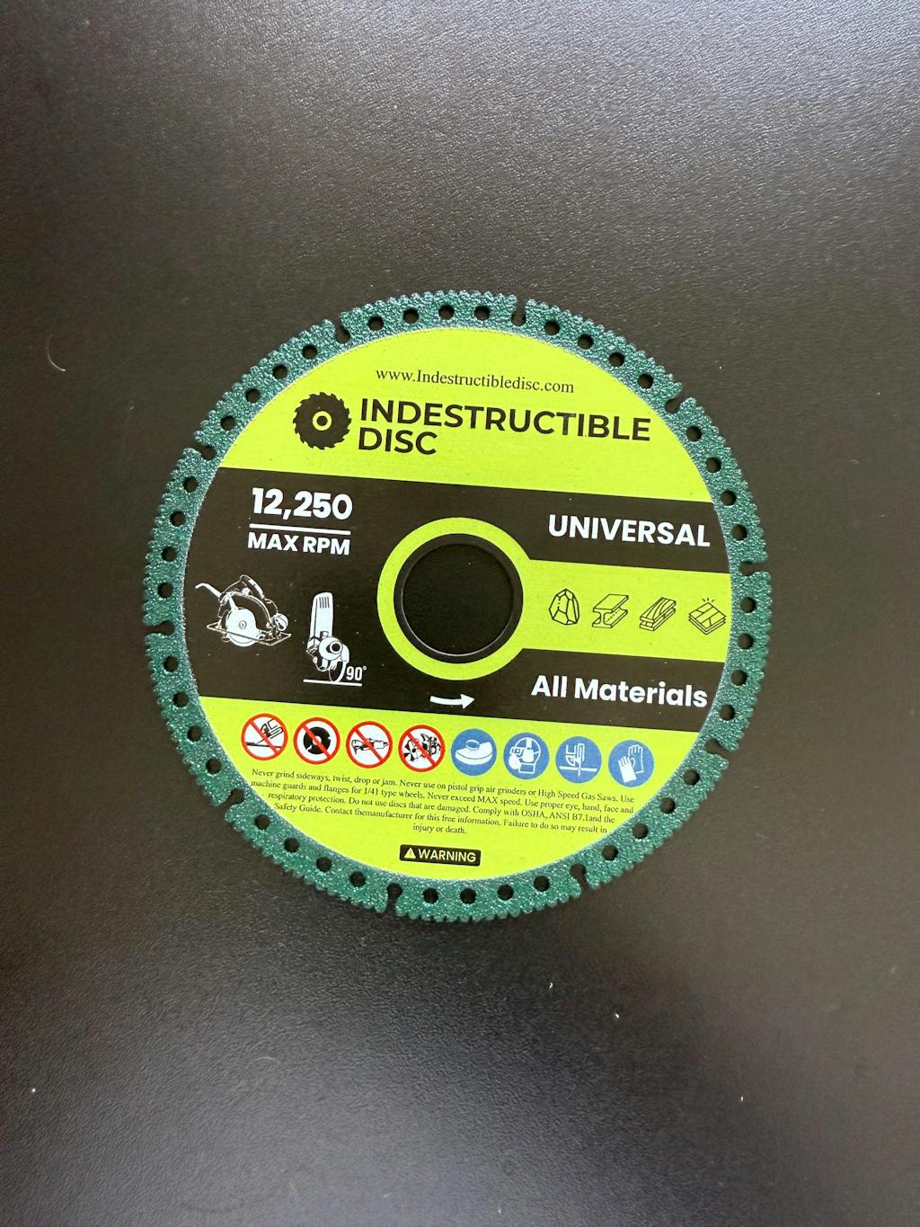 Thanks to the innovative X-Cut edge, the Indestructible Disc effortlessly glides through any material, whether it's metal, stone, concrete, ceramic, glass, plastic, wood, or asphalt.