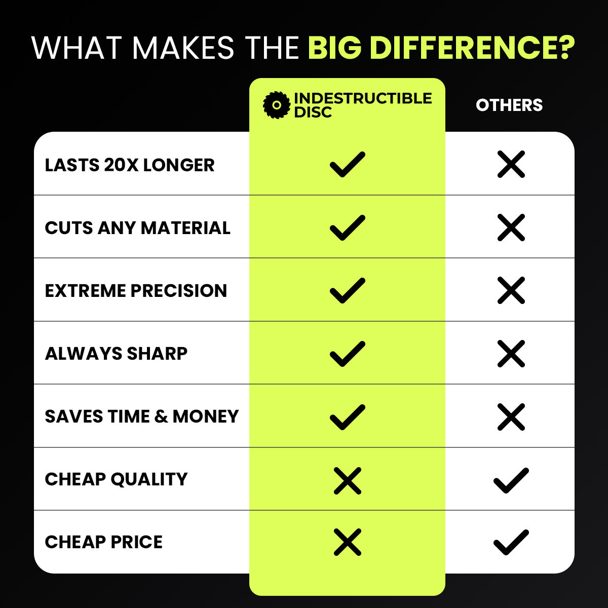 Cheap copies don't deliver what they promise. The Indestructible Disc™ 2.0 delivers real performance where others fall short. Maximum durability, precise cuts, and consistent sharpness — for those who refuse to compromise.